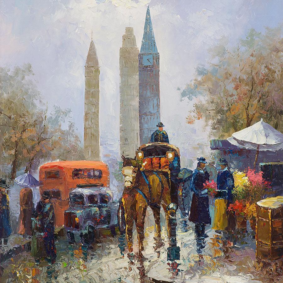 A nostalgic collection capturing the beauty of historic cityscapes, Timeless Streets evokes the charm of bygone urban life through cobblestone alleys and vintage architecture. Each piece transports viewers to serene markets, quaint streets, and bustling corners, preserving the romance of cities from a distant era.